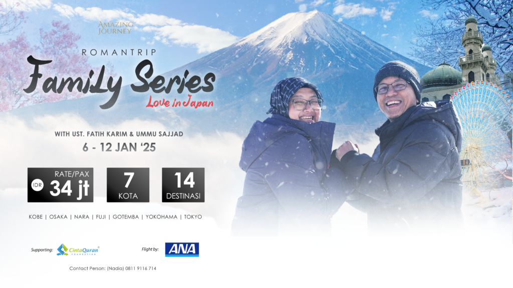 “Nikmati Intimate Trip bersama Orang Terkasih beserta Ust. Fatih Karim & Ummu Sajjad pada Musim Salju di Jepang. Jumlah Peserta Terbatas! Perjalanan Menggunakan 1 Private Bus!”